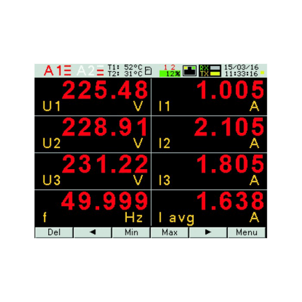 The 3.5” TFT full-colour screen displays measured values and enables control and optimisation of the power electronic devices, systems and industrial installations. The meter provides measurement of 54 parameters and harmonics up to 63rd. A RS485 port or Ethernet interface provides transmission of all parameters to a master system. Three relay outputs signal the overflow of the chosen value and the programmable analogue output maps the assigned parameter. The temperature inputs can be used to control the temperature of the transformers windings, motors etc.